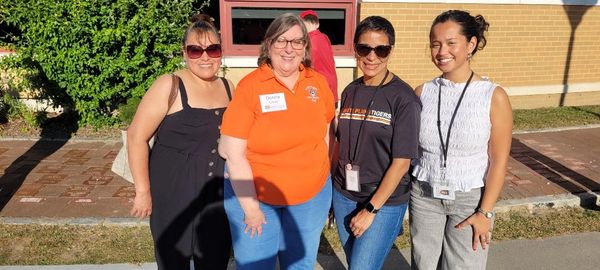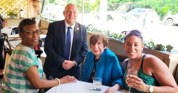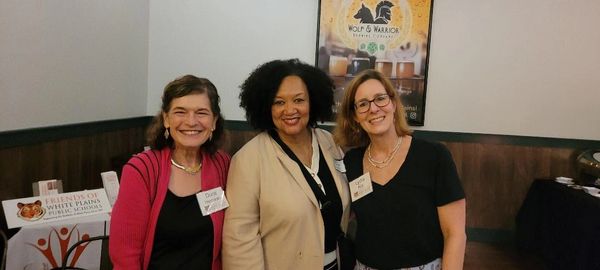 School Board President Rosemarie Eller, Assemblyman Chris Burdick, former Clerk of the White Plains Michele Schoenfeld, and current Clerk of the Board Michelle Melendez.