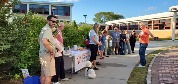 Assistant Superintendent for Business, Dr. Ann Vaccaro-Teich, xxxxx, Friends Board Secretary Michael Kraver and School Board Vice President Cayne Letizia.