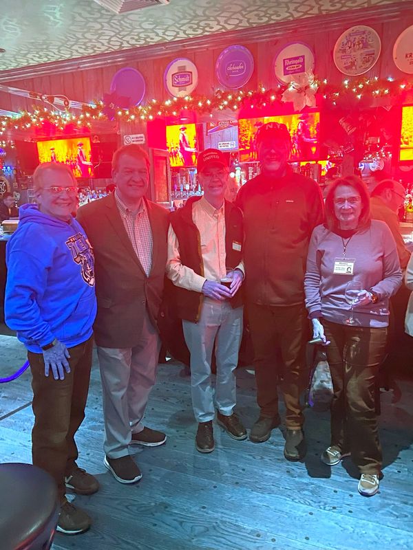 New York State Assembly members Amy Paulin, left, and Chris Burdick, right, presenting proclamations to departing board members Rose Lovitch (12 years of service on Board) and Jim Hricacry (15 years).